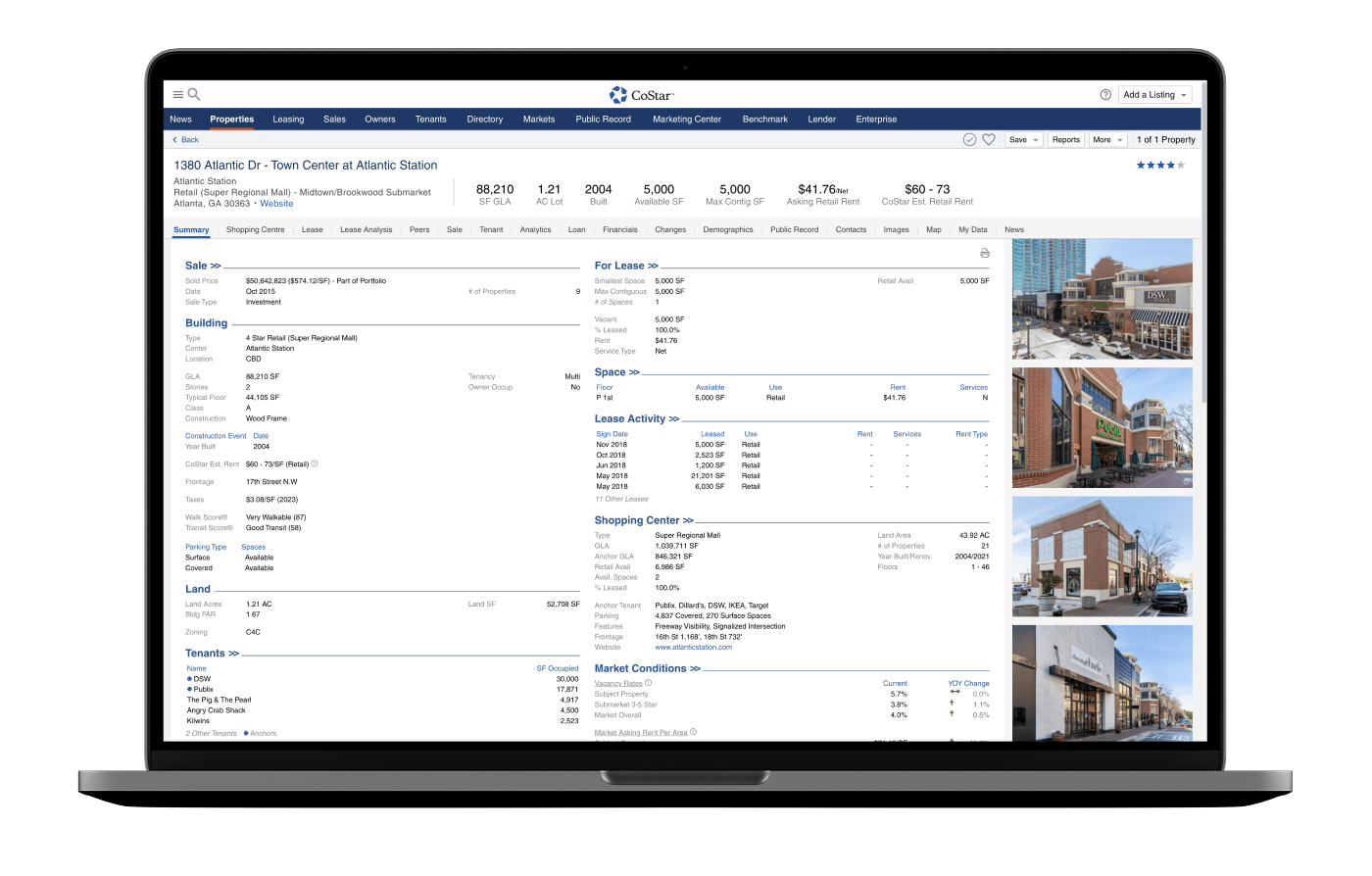 Evaluate standalone sites or shopping centers in any market with access to 7M+ commercial properties, 8M+ tenant locations and 2M+ true owners. CoStar gives you industry-leading insights with a deep understanding of the competitive landscape to support smart decisions—whether opening, relocating or rightsizing your retail footprint.