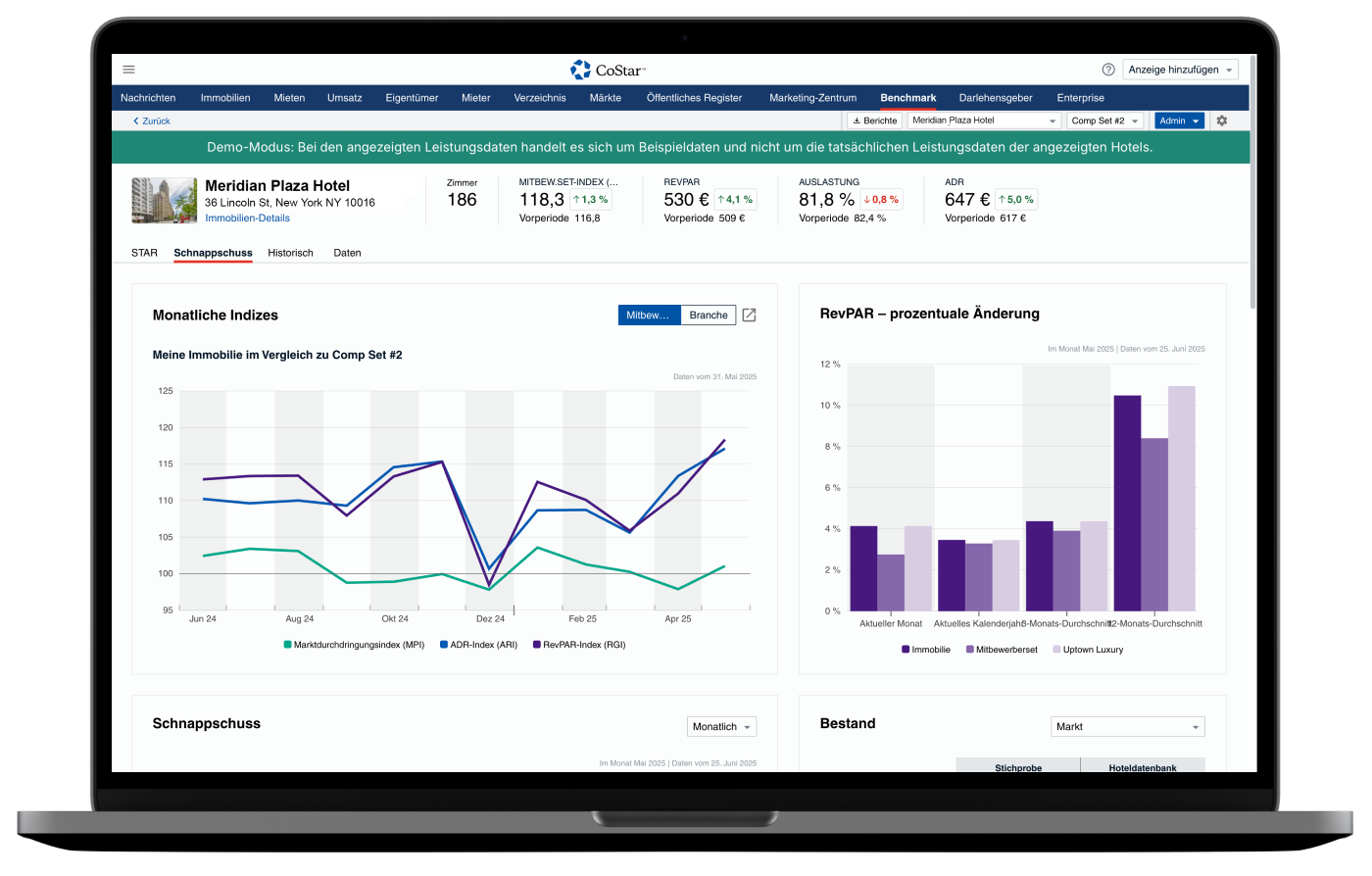 Benchmark liefert die Einblicke auf Immobilien- und Portfolioebene, die benötigt werden, um intelligente Echtzeitentscheidungen zu treffen und die strategische Zusammenarbeit zwischen Hotelportfolios, Verkaufs- und Marketingabteilungen, Umsatz- und Performance-Management-Teams sowie den Bereichen Betrieb, Finanzen und Entwicklung zu optimieren.
