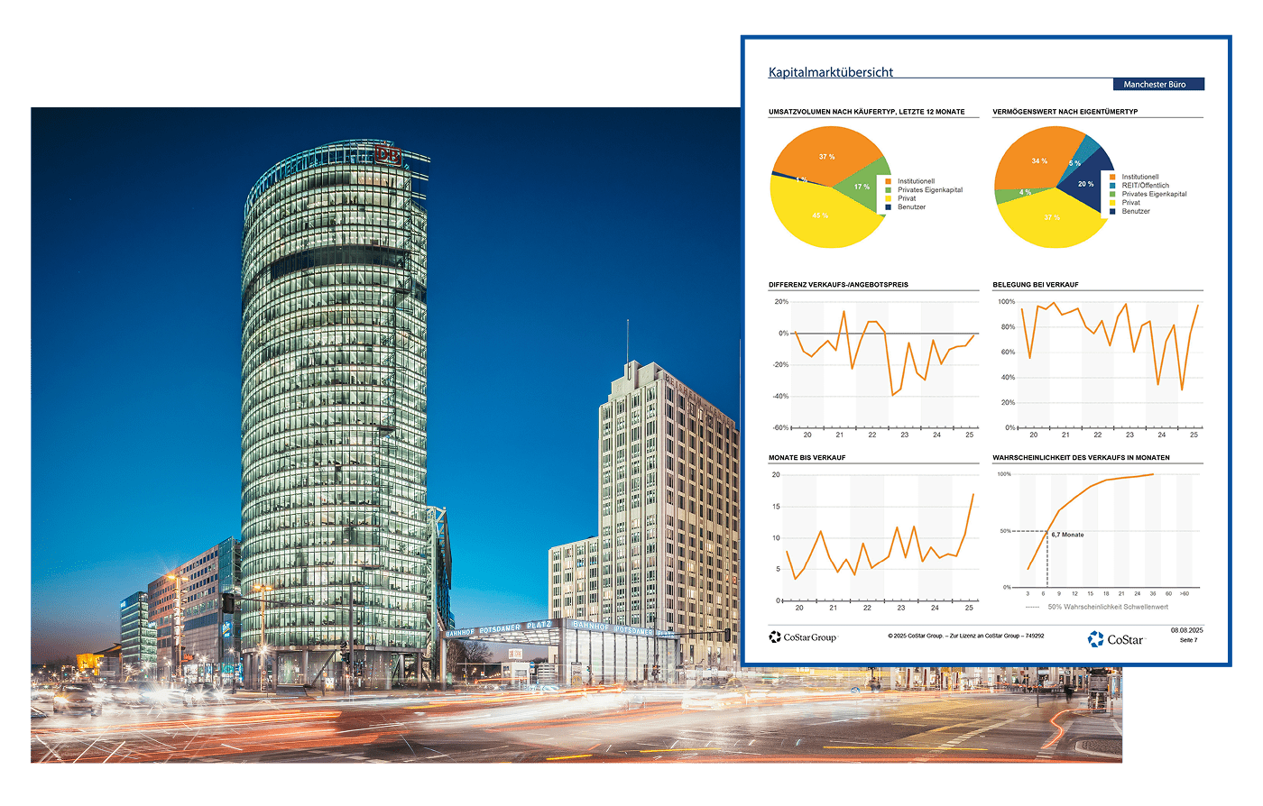Untersuchen Sie Trends bei Kapitalflüssen, Preisgestaltung und Transaktionsvolumen – unterstützt durch fachkundige Forschung und Daten von CoStar.