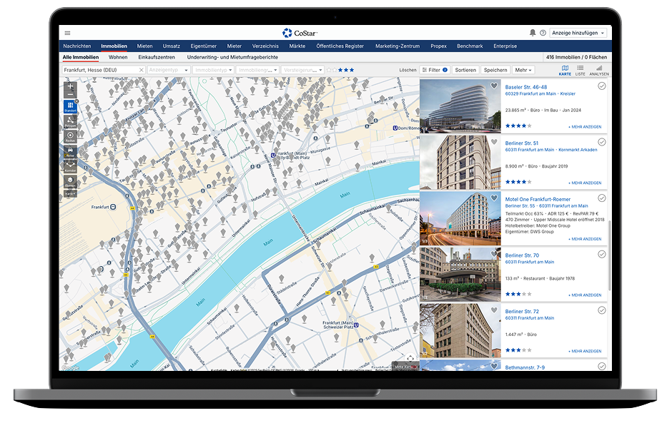 Zugriff auf mehr als 7,3 Millionen unabhängig recherchierte Datensätze zu Gewerbeimmobilien