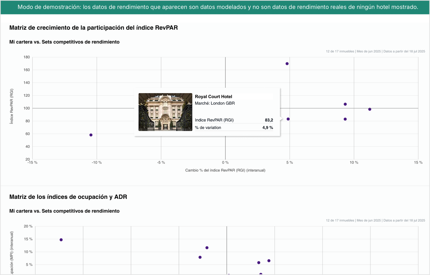 Demuéstrales a los propietarios la proporción de ocupación y tarifas que necesitan para superar a sus competidores y aumentar sus beneficios. Analiza el rendimiento de las carteras con la opción de profundizar en clusters o grupos específicos.
