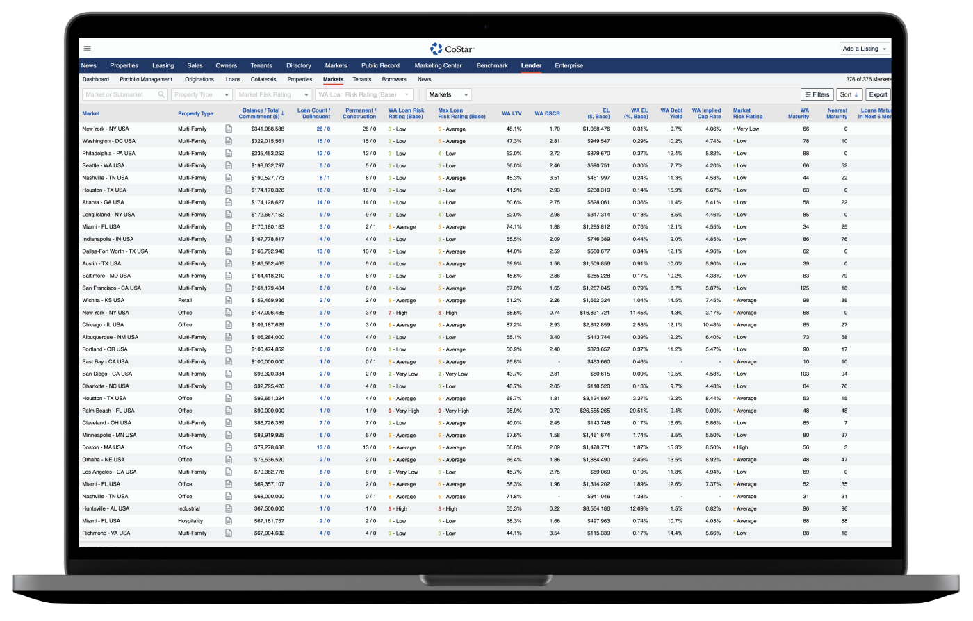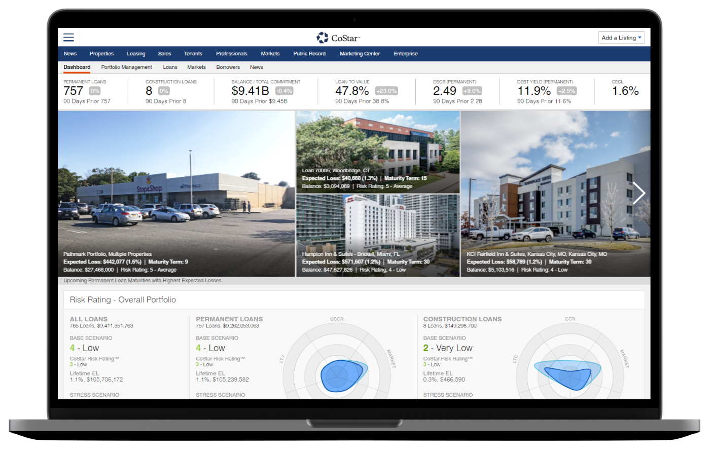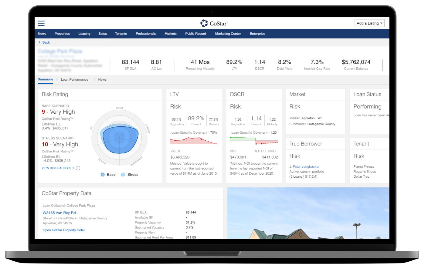 Accede a la información sobre inmuebles, los análisis de mercado y los modelos de incumplimiento crediticio líderes del sector de CoStar.