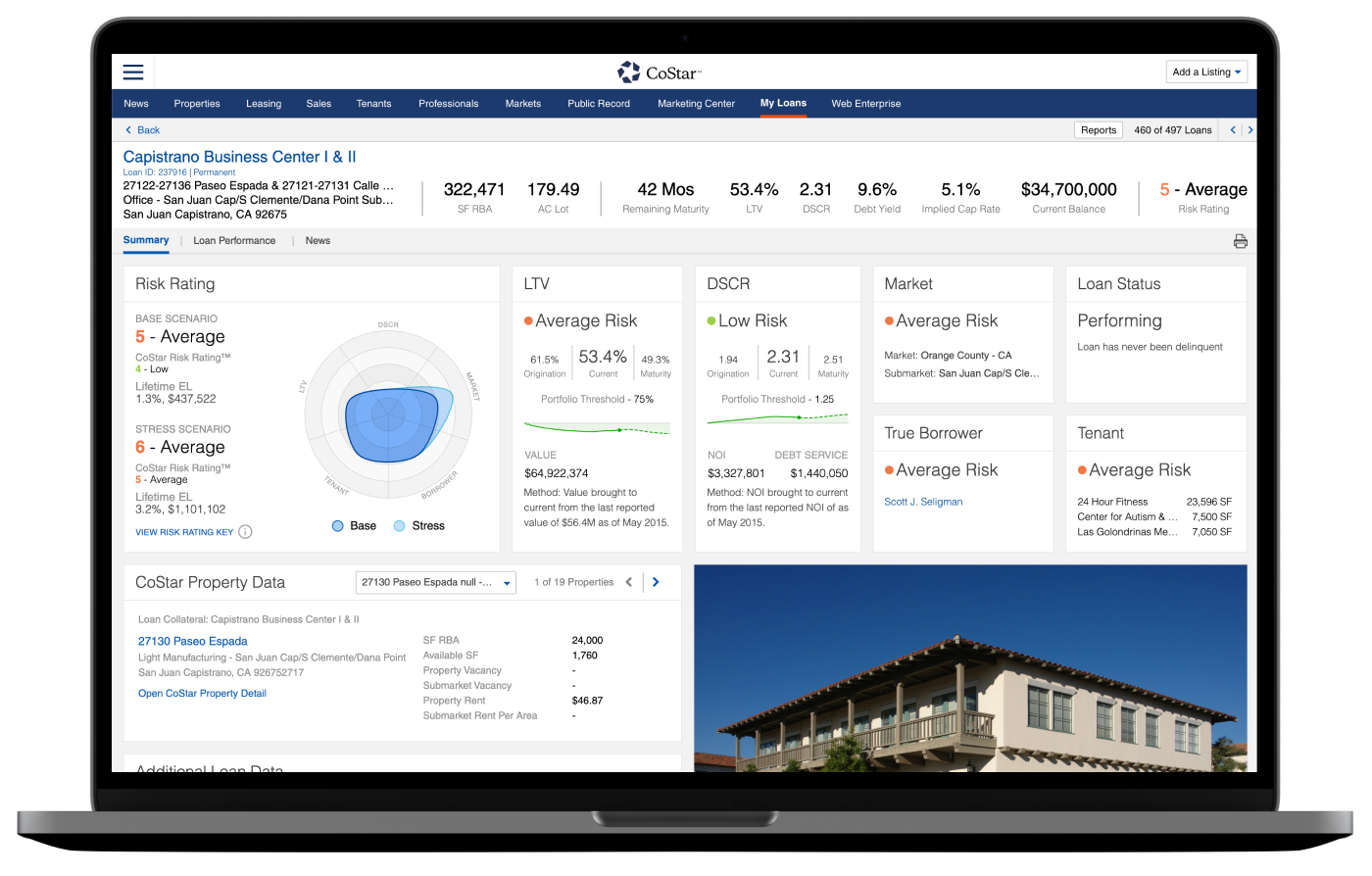 Abalado con décadas de experiencia, CoStar Risk Analytics es la base de datos más completa del sector sobre oficinas, locales, naves, terrenos y otros inmuebles terciarios. El modelo COMPASS de incumplimiento crediticio, ampliamente probado, te permite examinar en profundidad los mercados, los edificios y los préstamos con mayor rapidez.