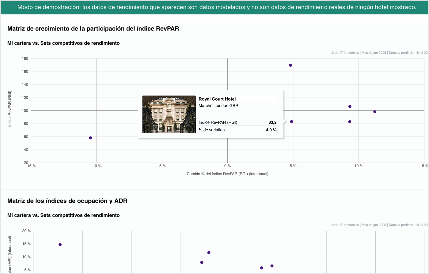 Demuéstreles a los propietarios la proporción de ocupación y tarifas que necesitan para superar a sus competidores y aumentar sus beneficios. Analice el rendimiento de las carteras con la opción de profundizar en clusters o grupos específicos.