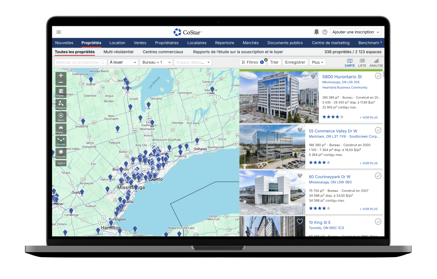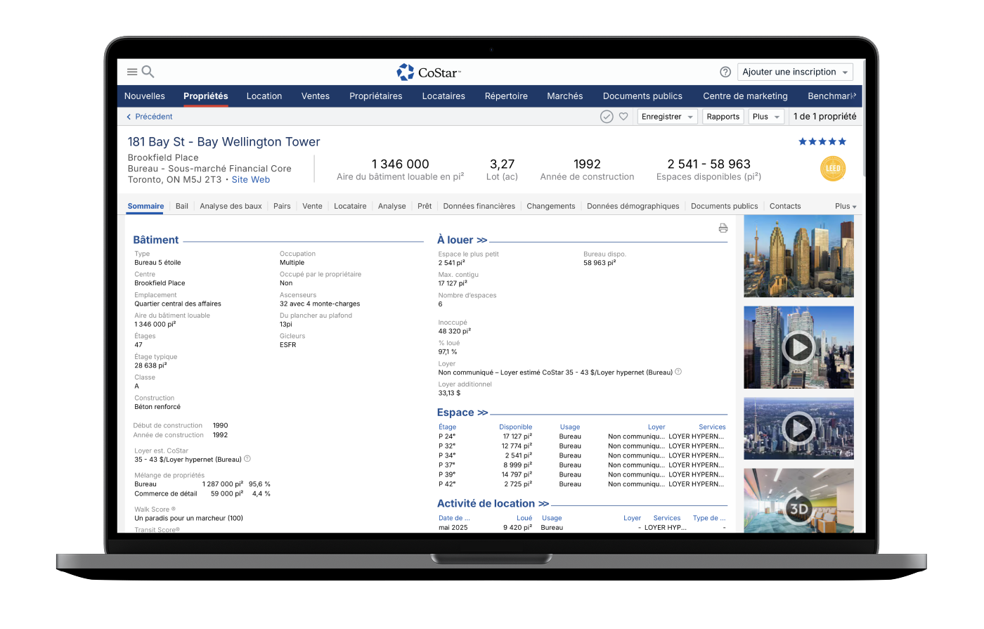 Seul CoStar fournit une plateforme complète d'informations, d'analyses et de nouvelles sur l'immobilier commercial couvrant les secteurs des bureaux, de l'industriel, de la vente au détail, du multifamilial, de l'hôtellerie et des terrains.