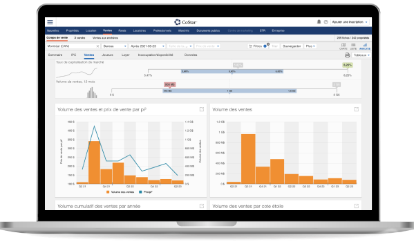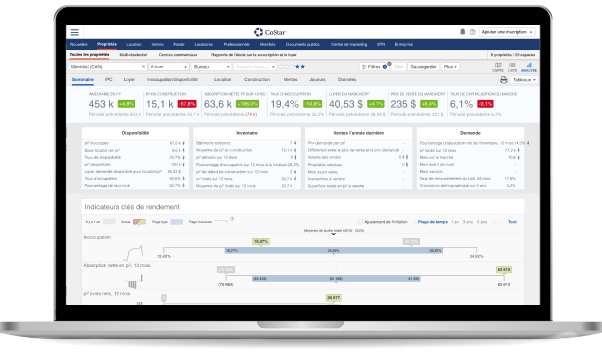 Créez des alertes afin d'obtenir rapidement des informations sur le marché. Analysez les informations sur les bâtiments grâce à des données analytiques sur plus de 7 millions de propriétés, comme les dates du bail, les loyers demandés et obtenus, la durée sur le marché, les données d'expiration et plus encore.