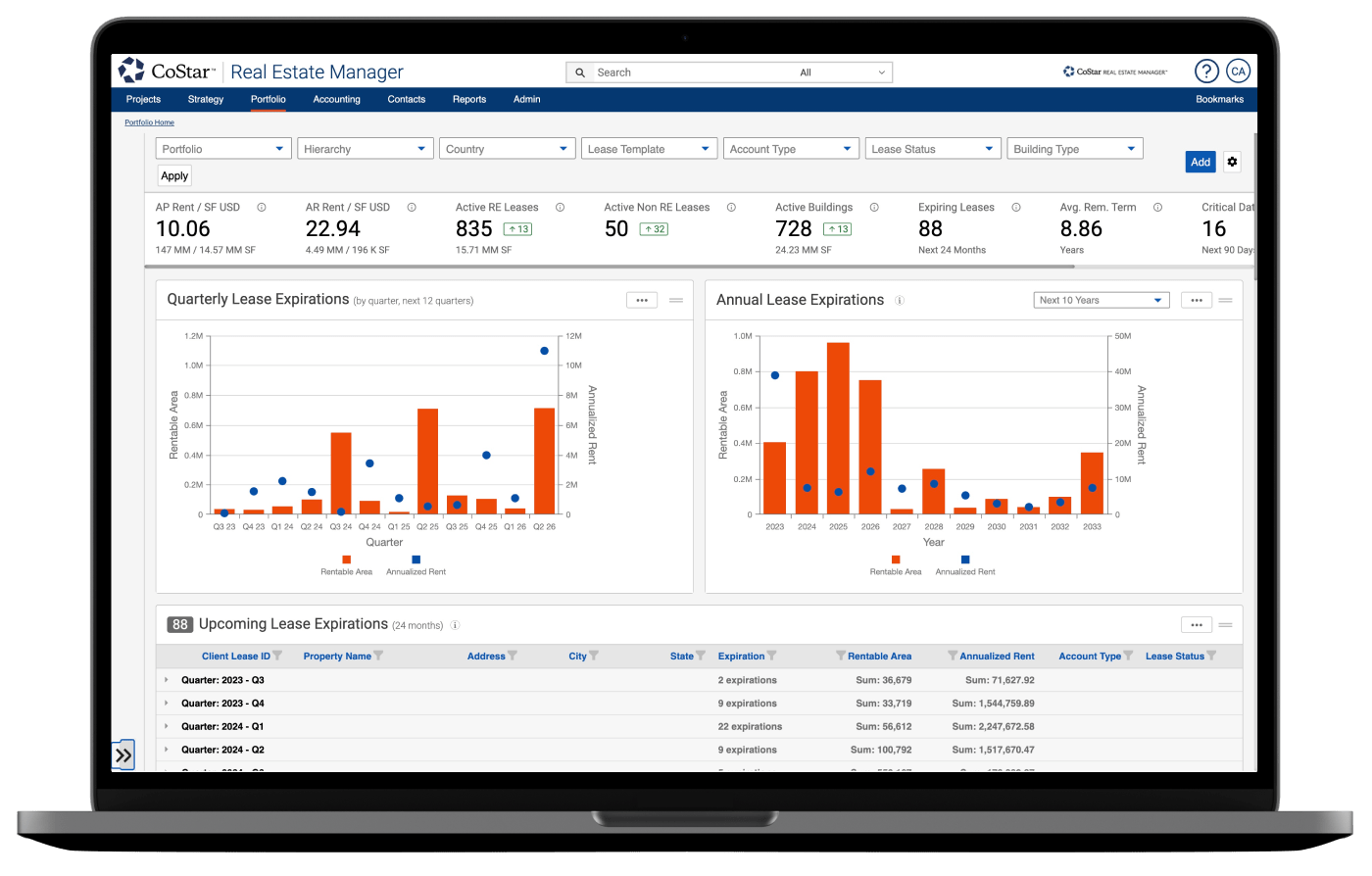 CoStar Real Estate Manager facilite la prise de décisions immobilières complexes, automatise la gestion de la conformité de la comptabilité de baux, et vous aide à conclure des ententes en toute confiance. Cette plateforme vous offre aussi une expertise de premier ordre, un soutien à la clientèle inégalé et une implémentation sans faille.