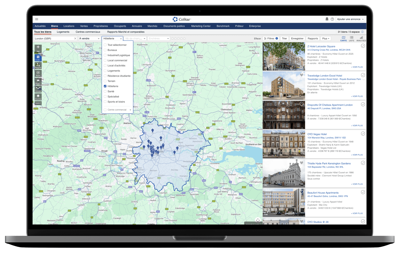 CoStar avec STR Benchmark est la seule solution de benchmarking qui donne aux propriétaires d’hôtels une vision complète du cycle de vie de l’établissement, de l’acquisition à la cession, en intégrant toutes les phases d’exploitation.