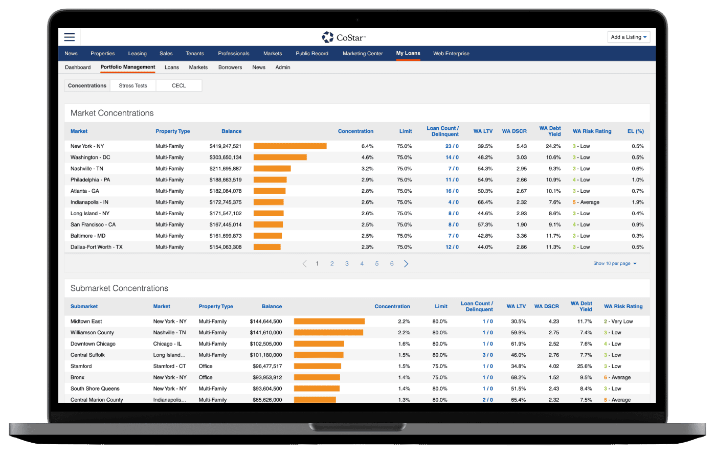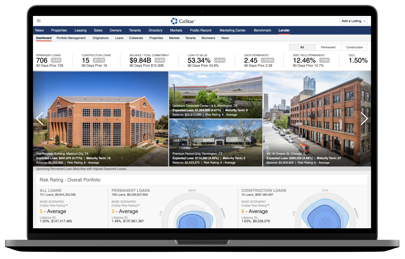 En croisant votre portefeuille de financement avec les données immobilières, les analyses de marché et le modèle de risque de crédit de CoStar, vous maîtrisez vos risques. Prenez des décisions de financement éclairées et renforcez votre crédibilité auprès des régulateurs.