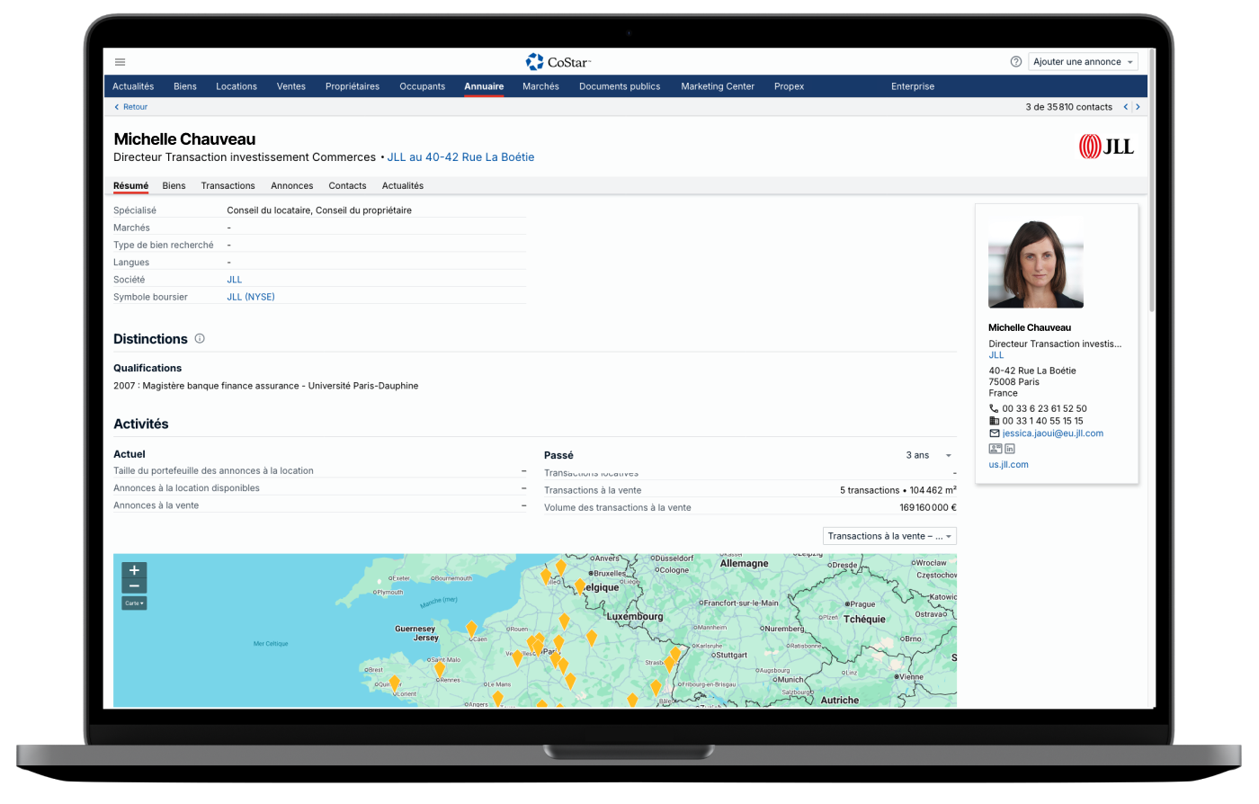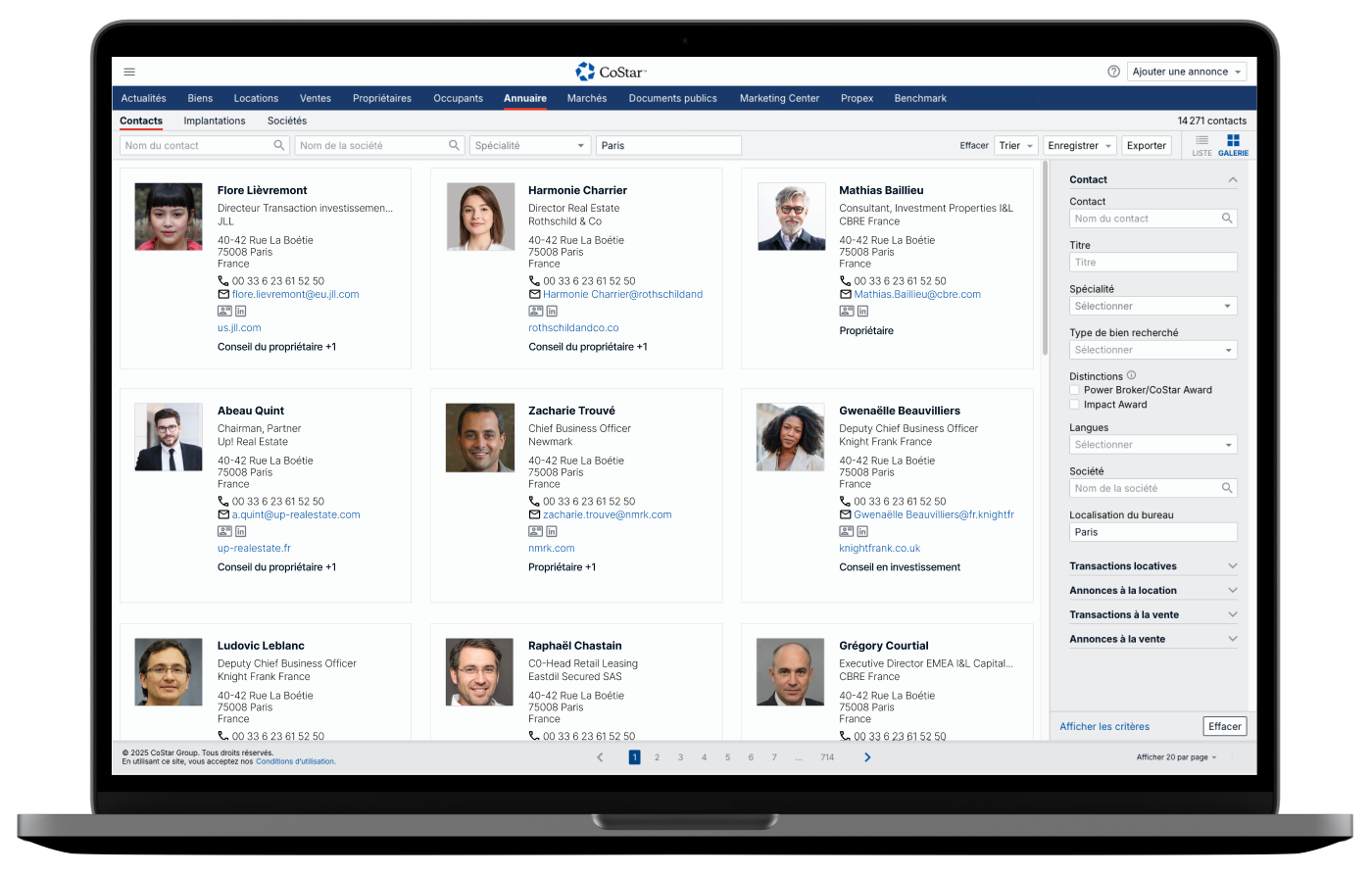 Recherchez et contactez facilement plus de 300 000 professionnels de l’immobilier d’entreprise pour accéder à de nouvelles opportunités Accédez en un clin d’œil à des contacts et entreprises qualifiés, filtrés par spécialité, expertise, annonces, marché, distinctions CoStar, disponibilités, historique de transactions, et bien plus encore.