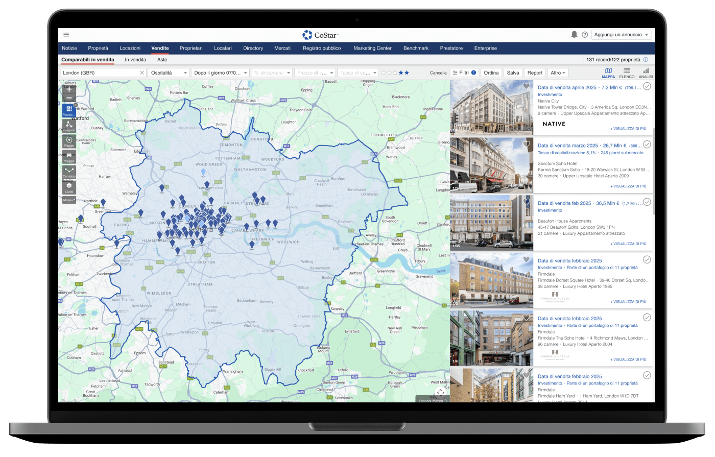 CoStar + Benchmark è l’unica soluzione per l’analisi della quota di mercato che offre a proprietari, società di gestione e marchi una panoramica completa dell’intero ciclo di vita di un hotel, dall’acquisizione alla cessione, passando per la gestione operativa.