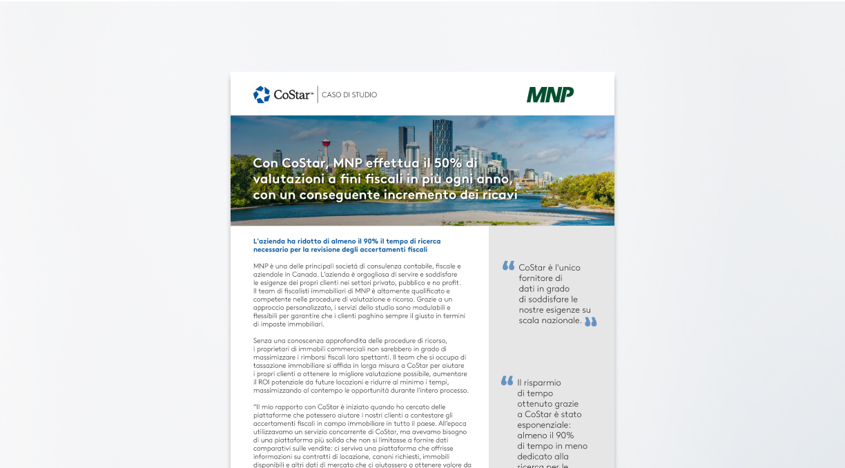 Grazie a CoStar, l’azienda effettua il 50% in più di valutazioni fiscali ogni anno e riduce di almeno il 90% il tempo di ricerca necessario per rivedere le proprie stime fiscali.