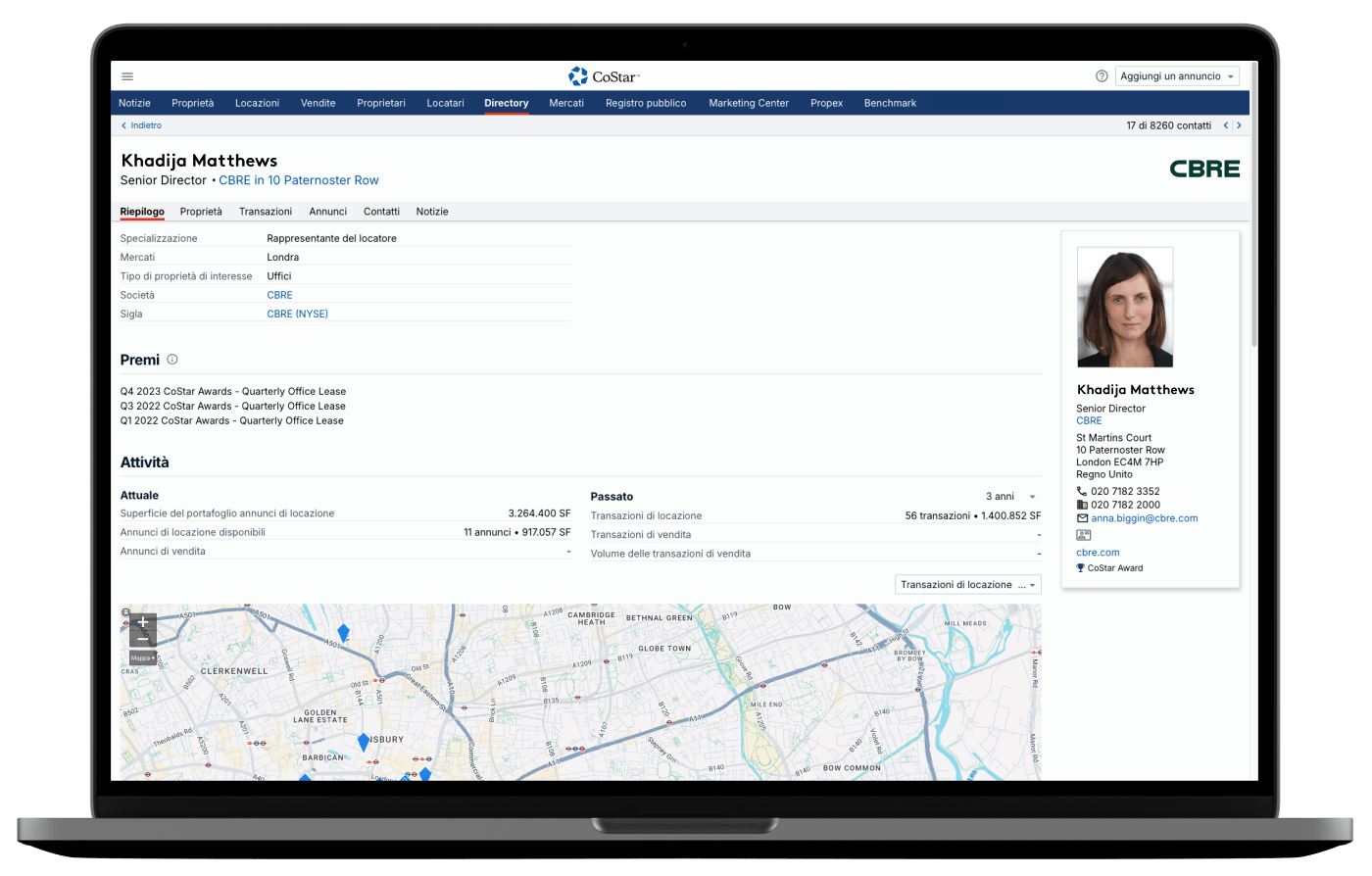 Entra in contatto con i professionisti del settore immobiliare commerciale per individuare nuove opportunità. Cerca contatti, sedi o società per specializzazione, tipo di competenze o transazioni, numero di annunci attuali, mercati di interesse, premi CoStar vinti e molto altro ancora.