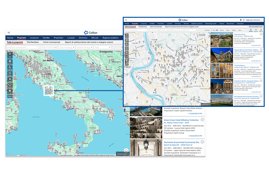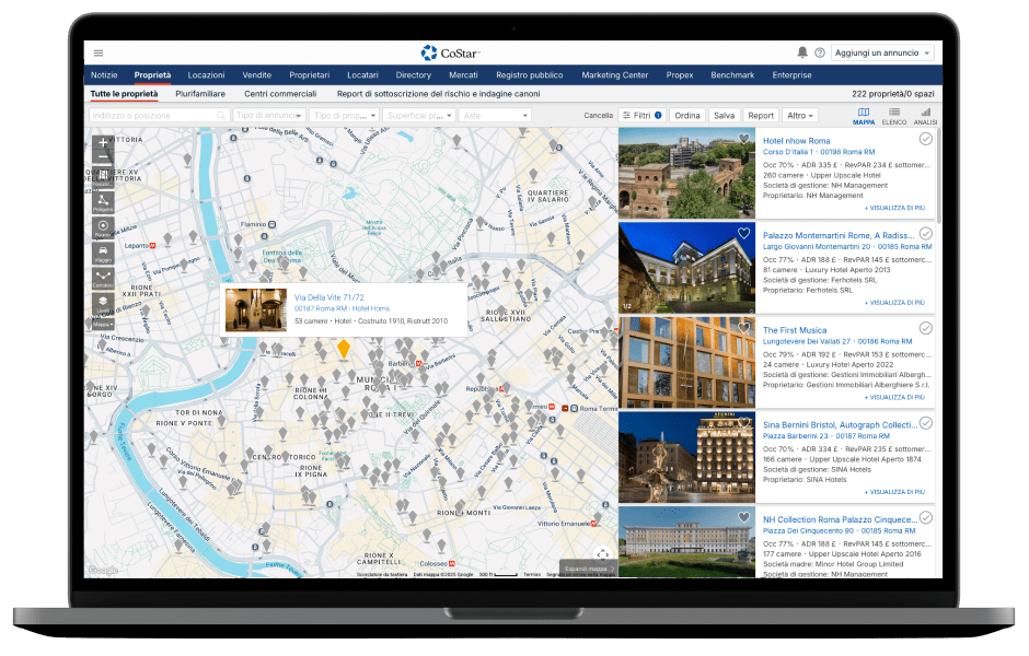 I dati immobiliari di CoStar sono così completi che è come trovarsi nell'atrio degli edifici. Con una semplice ricerca, accedi una miniera di informazioni dettagliate su immobili commerciali di ogni tipo, in qualsiasi mercato e paese.