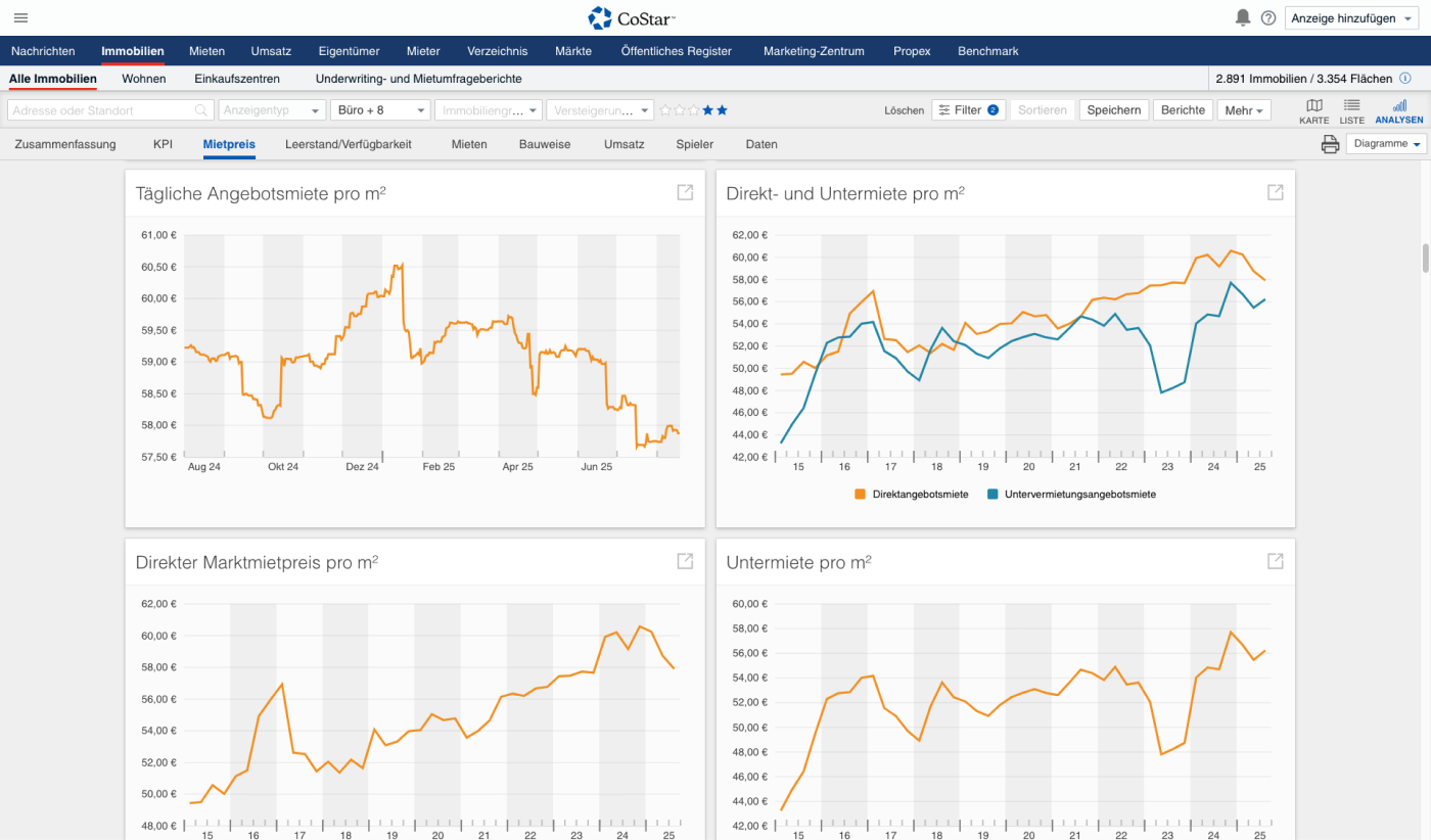 CoStarの物件一覧ネットワーク全体を1つのビューで検索できます。