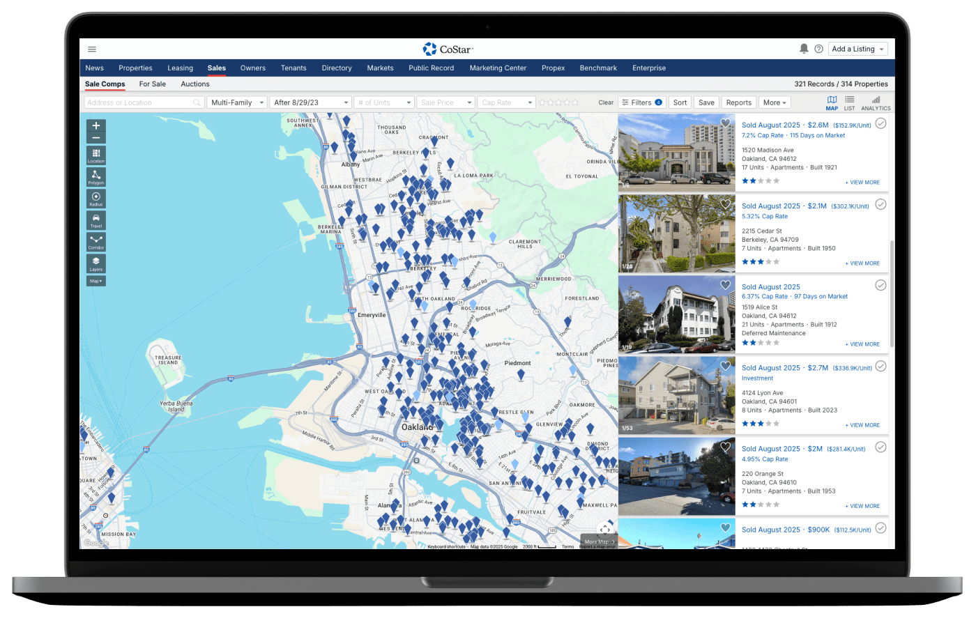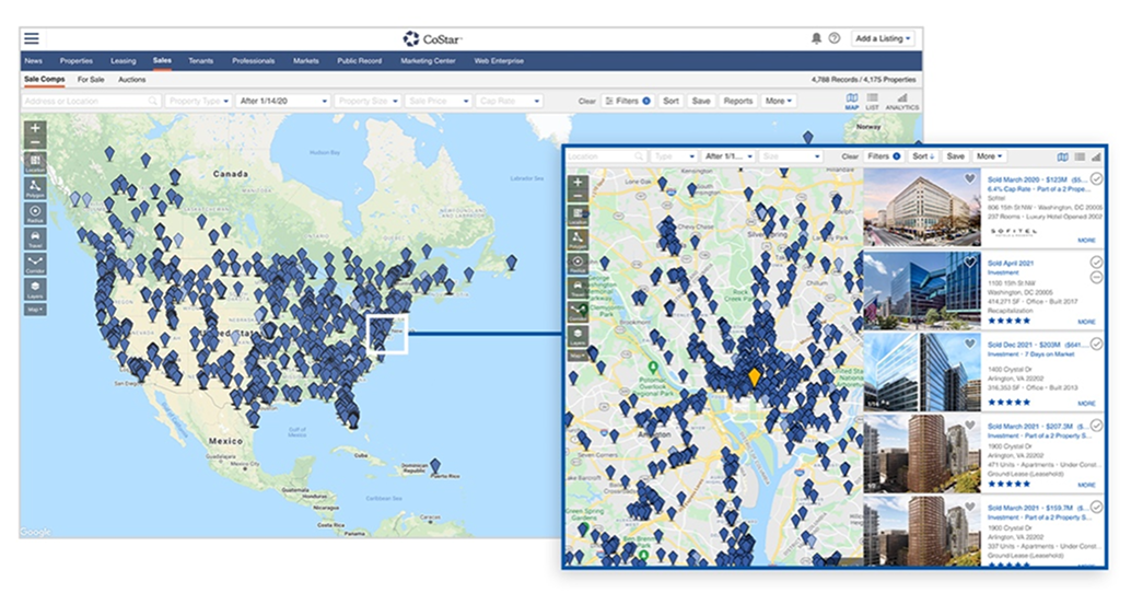 CoStar's intuitive platform makes it easy to find and explore detailed information on commercial real estate sales. Quickly locate and analyze independently verified data on key details including sale date, asking and achieved price, time on market and comprehensive sale notes.