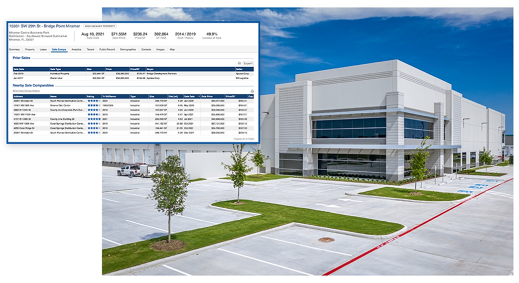 Sale comparables connect to a wealth of connected CoStar data on tenants, vacancies, for sale listings and more.