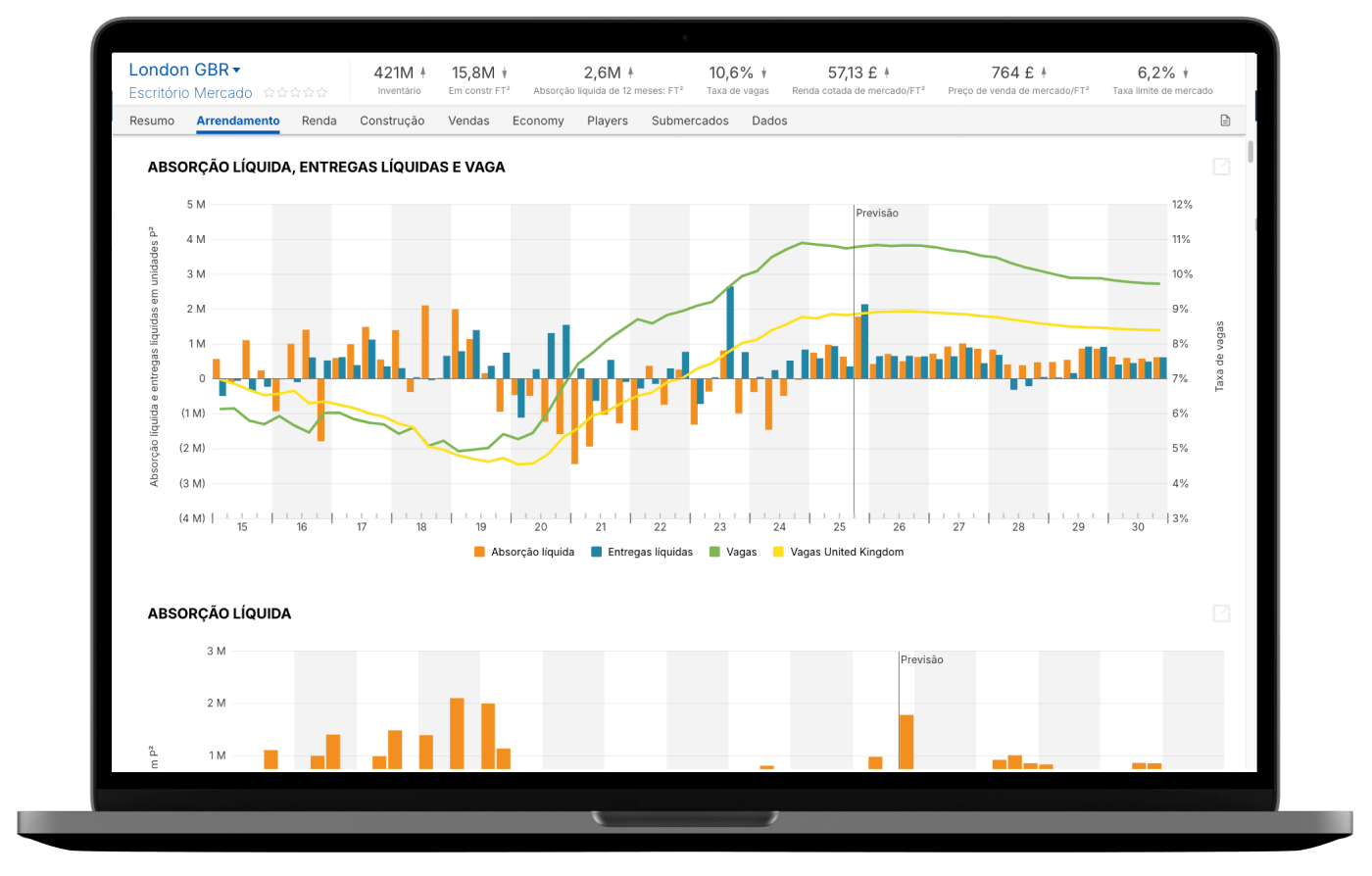 As análises da CoStar são flexíveis, levando-o rapidamente à informação que interessa. Aprofunde relatórios de análise para milhares de mercados e submercados comerciais em todo o mundo, ou crie sua visualização personalizada com filtros de pesquisa avançados. Os gráficos interativos revelam as tendências e constroem previsões com base em diferentes cenários económicos, tudo complementado com comentários de especialistas dos nossos analistas internos.