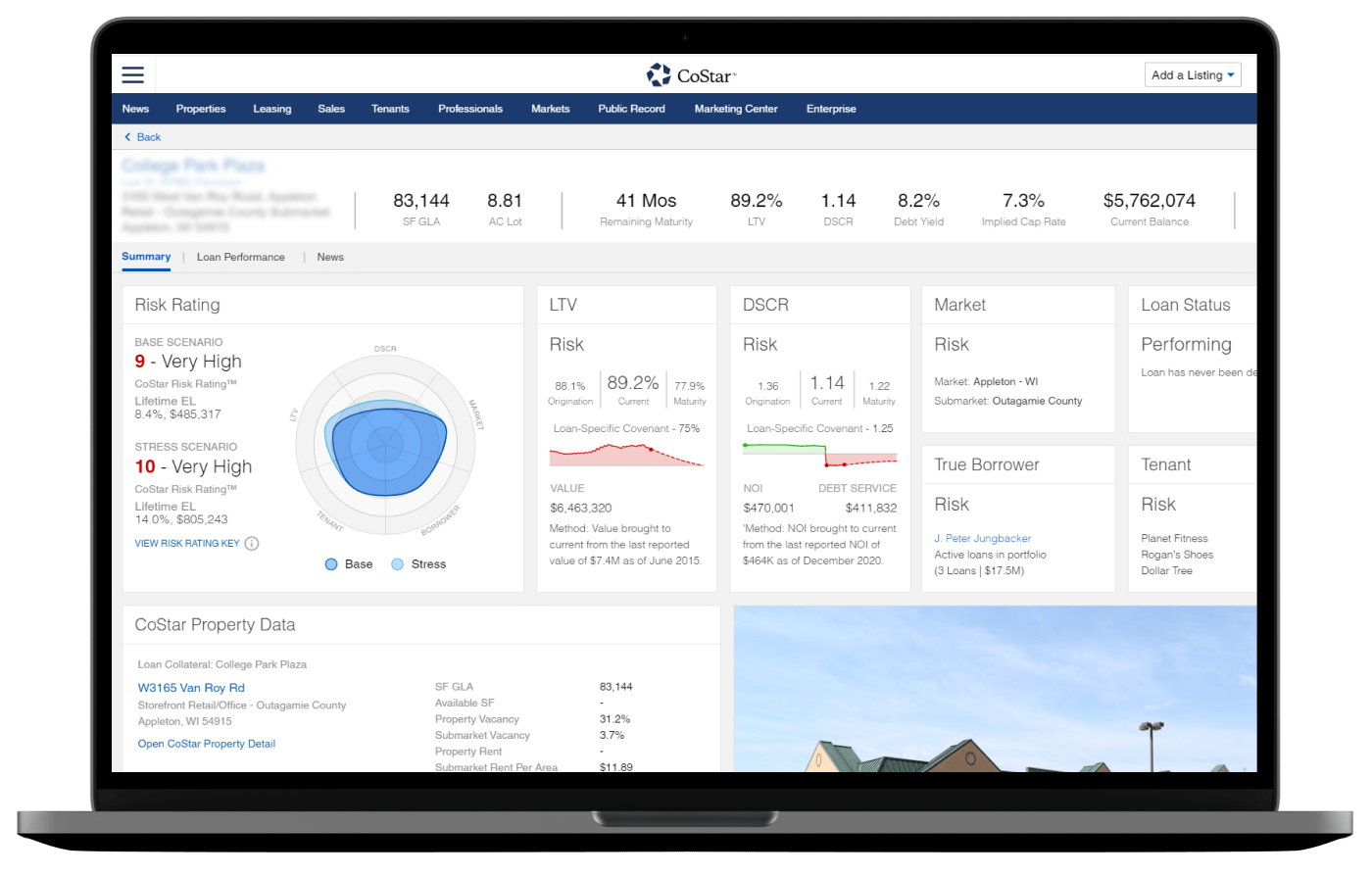 Ligue-se a informações sobre propriedades, análises de mercado e modelos de incumprimento de crédito líderes do setor da CoStar.