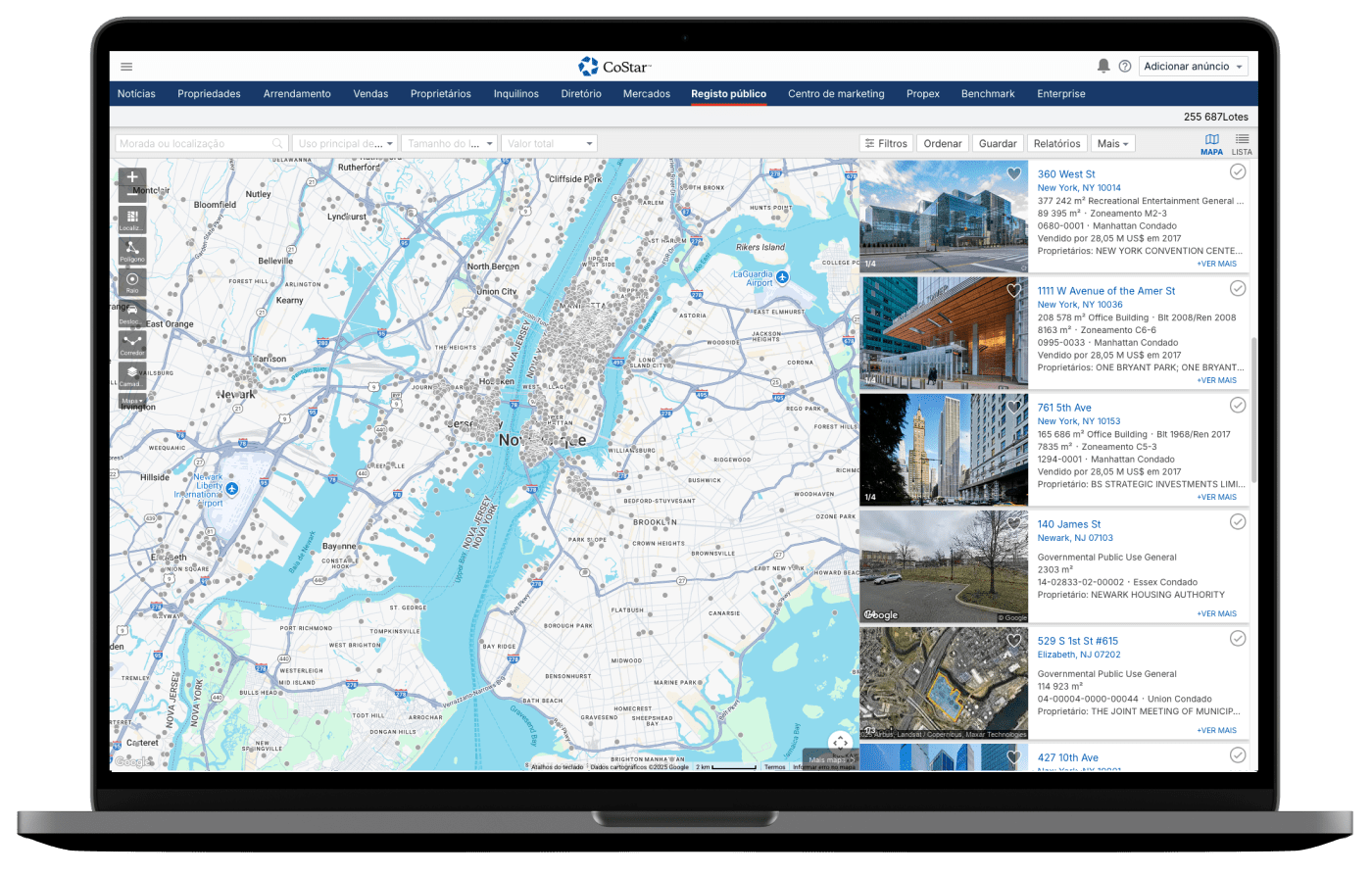 Os registos públicos CoStar colocam 42 milhões de registos de imóveis comerciais à sua disposição, facilitando a pesquisa de informações públicas que remontam a décadas atrás sobre qualquer edifício comercial ou parcela de terreno.