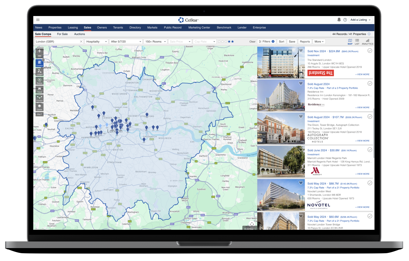 CoStar + Benchmark 是唯一一款能够让业主、运营方和品牌在从收购到运营再到撤资的整个酒店生命周期全面了解市场份额信息的解决方案。